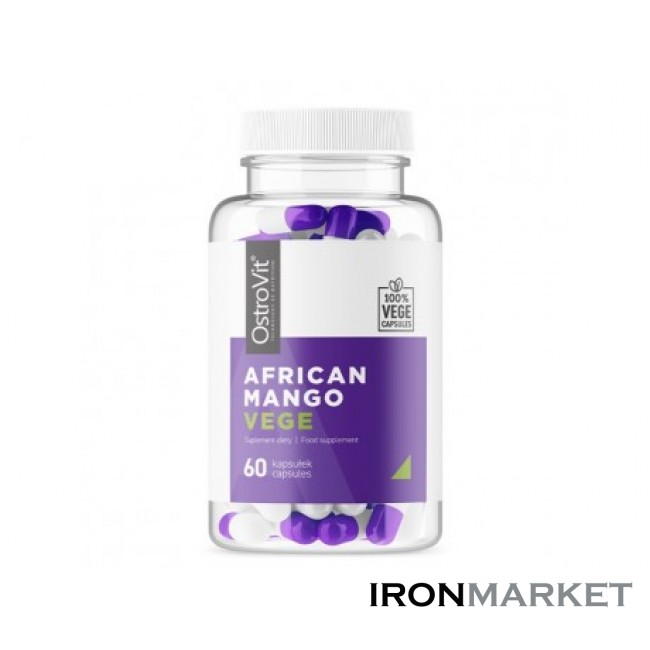 Харчова добавка OstroVit - African Mango Vege містить екстракт насіння африканського манго (Irvingia gabonensis L.), сприяє підтримці процесу ліполізу, тобто спалюванню жирів в нашому організмі, і надає зміцнювальний вплив на здоров'я, як таке зниження артеріального тиску і загального холестерину. Це також сприяє розщепленню тригліцеридів і біохімічних процесів, пов'язаних із зменшенням частки ліпопротеїнів низької щільності, яка є популярним "поганим холестерином" ЛПНЩ.