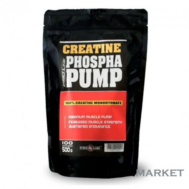 Креатин Form Labs Form Phospha Pump (Спортивное питание Форм Лабс Форм Форфа Памп) в порошковой форме. Сам по себе креатин является биомолекулой, которая создает АТФ. Он вырабатывается в печени человека, и хранится в мозге, скелетных мышцах и сердце, как запас сырья для производства АТФ. Чем больше креатина в мышце, тем больше скорость образования энергии, позволяющей мышцам работать дольше и интенсивнее. Он насыщает мышцы, в которых, в последствии, он должен превратиться в АТФ. Это превращение происходит без участия кислорода, и, следовательно, используется как анаэробный источник энергии. Также креатин увеличивает объем мышц за счет увеличение объема клеток, вследствие задержки воды в мышечных тканях.