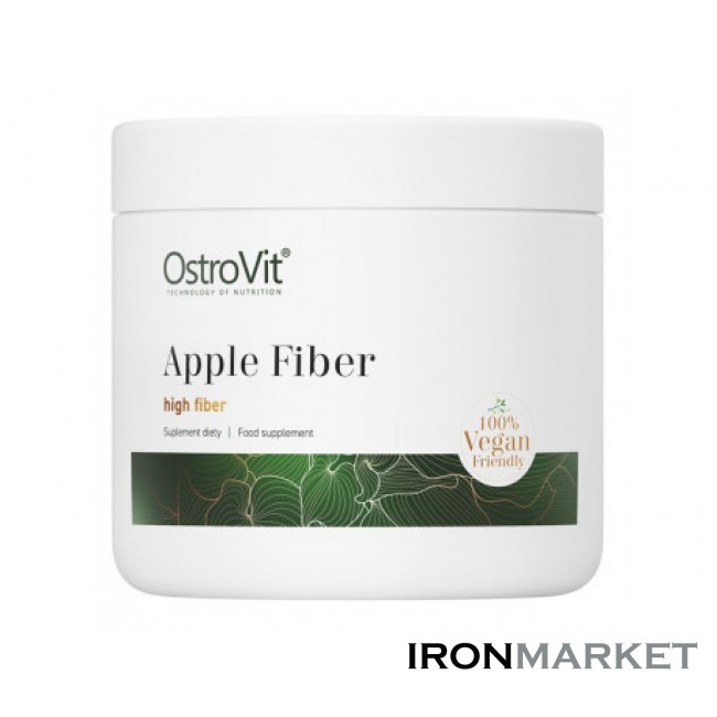 Харчова добавка OstroVit - Apple Fiber VEGE на основі рослинних волокон чистої яблучної клітковини. Продукт сприяє очищенню організму від токсинів, його можна додавати в свій улюблений напій – воду, смузі або йогурт.