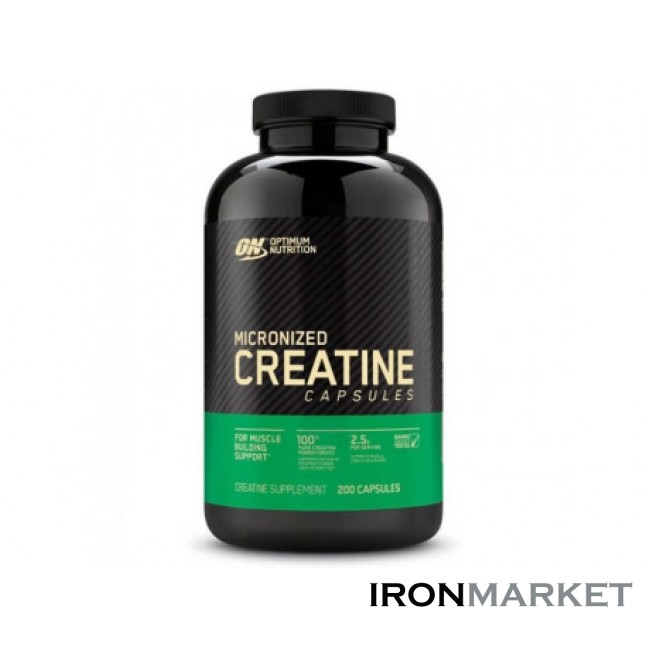 Optimum Nutrition Micronized Creatine Capsules - это чистый микронизированный креатин моногидрат в капсулах. Креатин - это азотсодержащее карбоновая кислота, которая содержится в организме человека и образуется при обмене веществ и встречается преимущественно в мышцах и сухожилиях. В форме капсул она не окисляется в желудке и полностью усваивается, быстро попадая в мышцы. Прием креатина от Оптимум Нутришн предоставляет мощный энергетический эффект на организм спортсмена в целом, креатин улучшает спортивные показатели, а особенно необходим для набора массы.