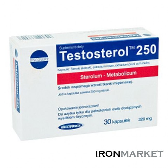 Testosterol 250 является продуктом изготовленным на основе активных фракций растительных стеринов. Стерины – кристаллические вещества, которые практически не растворимы в воде. В организме стерины окисляются и образуют стероиды. Основная биологическая роль стеринов состоит в том, что они являются предшественниками многих биологически активных соединений – стероидных гормонов, витаминов, желчных кислот, сапонинов, экдизонов. Важная роль стеринов заключается в формировании клеточных структур, в частности, клеточных мембран. В организме человека стерины содержатся в печени, нервной ткани, крови, подкожной жировой ткани. Главным животным стерином является холестерин. Его синтез в организме в условиях сбалансированного питания в печени составляет не менее 80%. Биологический эффект при введении Testosterol 250 напрямую зависит от соотношений между стероидами и гормонами в организме до введения препарата. Его составляющие компоненты с химической точки зрения подобно тестостерону могут производить анаболический эффект. Кроме того, они связываются с рецепторами эстрогена, уменьшая таким способом вероятность ароматизации (превращения в эстроген).