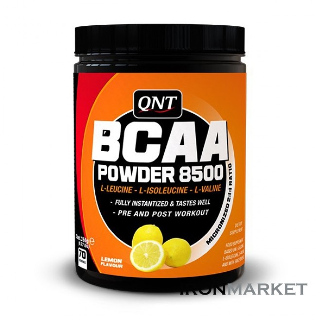 Всего две порции по 5 г BCAA Powder 8500 от QNT дают 8500 мг BCAA с соотношением аминокислот 2:1:1. Данный препарат абсолютно необходим всем серьезно тренирующимся атлетам, а также энтузиастам фитнеса. Эффективно использовать как до, так и после тренировки.